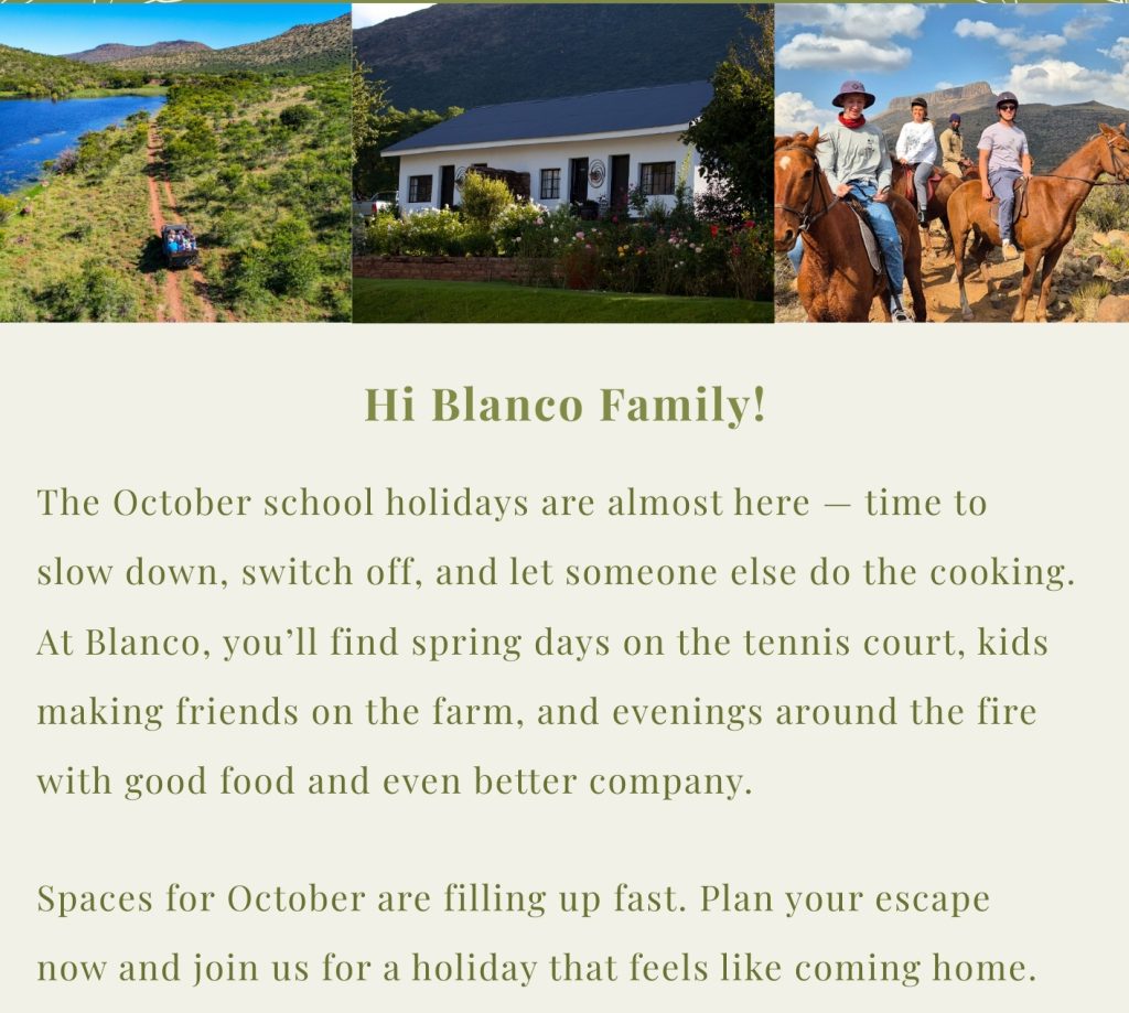 Blanco is located in the Eastern Cape interior at the foothills of the mighty Winterberg Mountains.